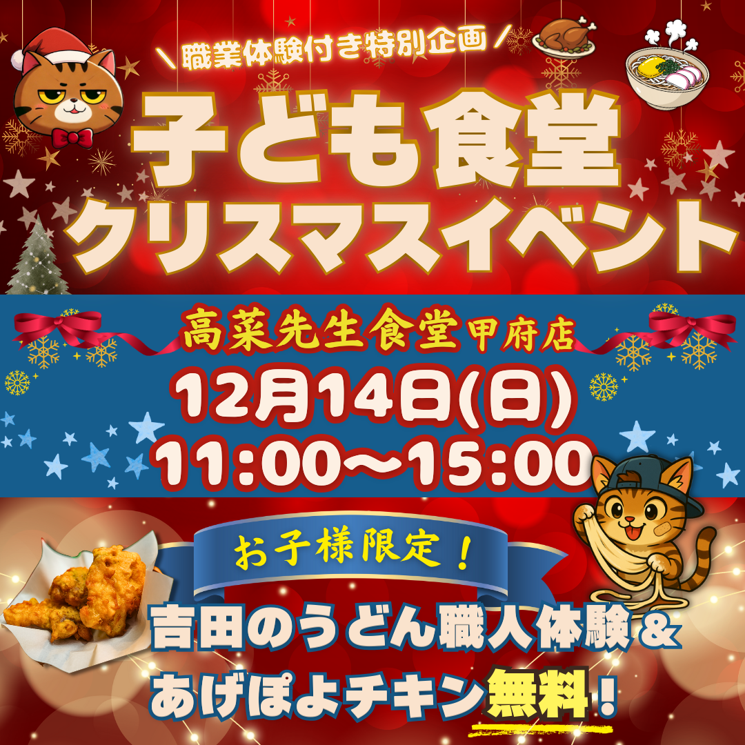 子どもたちが料理体験と食事を無料で楽しめる、クリスマス特別イベントです。